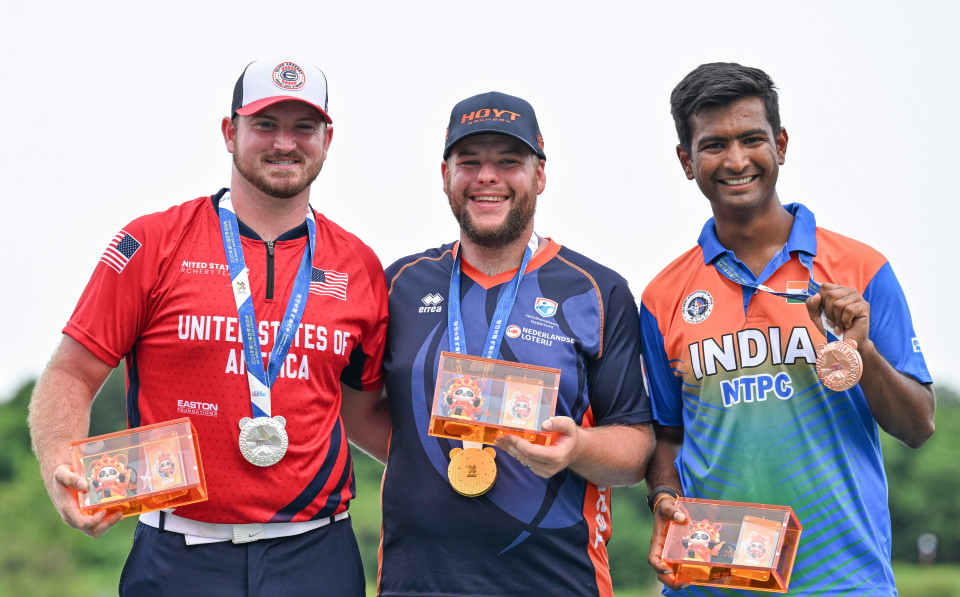 当日,在2025年成都世运会射准射箭男子复合弓决赛中,荷兰选手施洛瑟获得冠军,美国选手布罗德纳克斯、印度选手亚达夫分别获得亚军、季军。