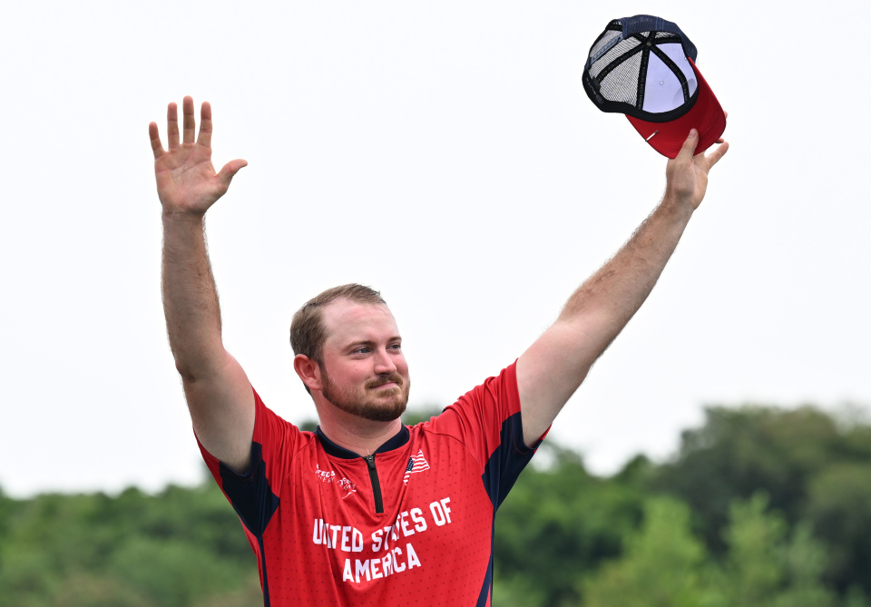 8月9日,亚军美国选手布罗德纳克斯在颁奖仪式上。新华社记者 陈诚 摄